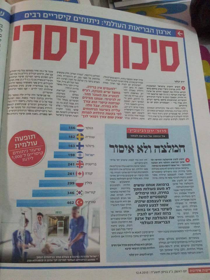 בישראל המצב עוד טוב יחסית למדינות אלו - מכלל הלידות שיעור הניתוחים הקיסריים עומד על 20%.