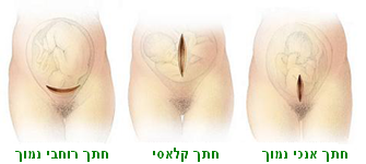 * חתך קלאסי (אנכי) או חתך שאינו חתך רוחבי נמוך - הסיכויים לקרע ברחם גדלים במקרים של חתך בצורת T או J או חתך אנכי נמוך.